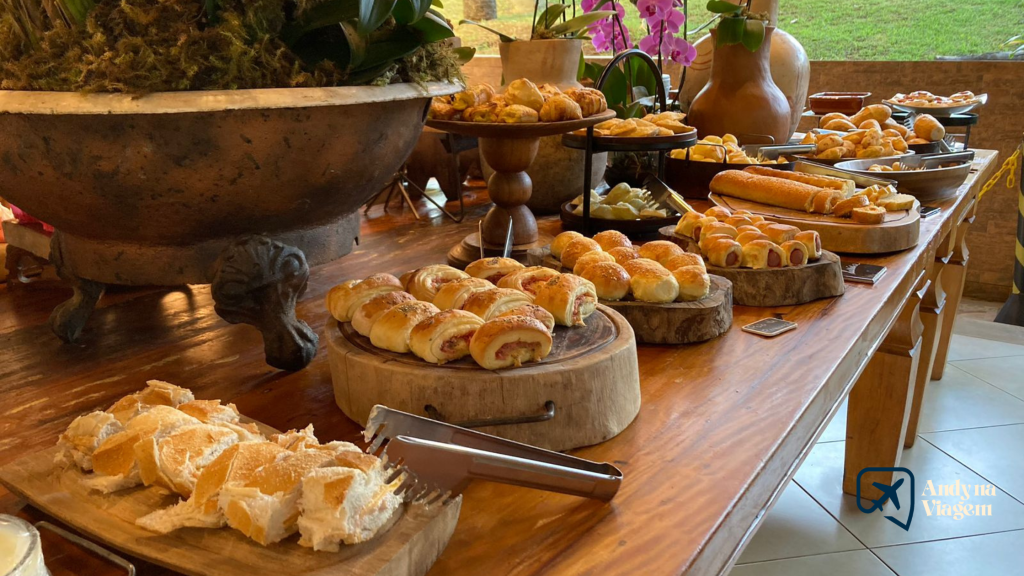 Logo cedo, um café da manhã generoso dá as boas-vindas aos hóspedes. São pães fresquinhos, bolos caseiros, tapiocas e crepes feitos na hora, salgados, queijos mineiros, geleias artesanais, frutas da estação e aquele doce de leite cremoso que só Minas Gerais sabe oferecer. O aroma do café passado na hora toma conta do ambiente e já anuncia que o dia será especial.